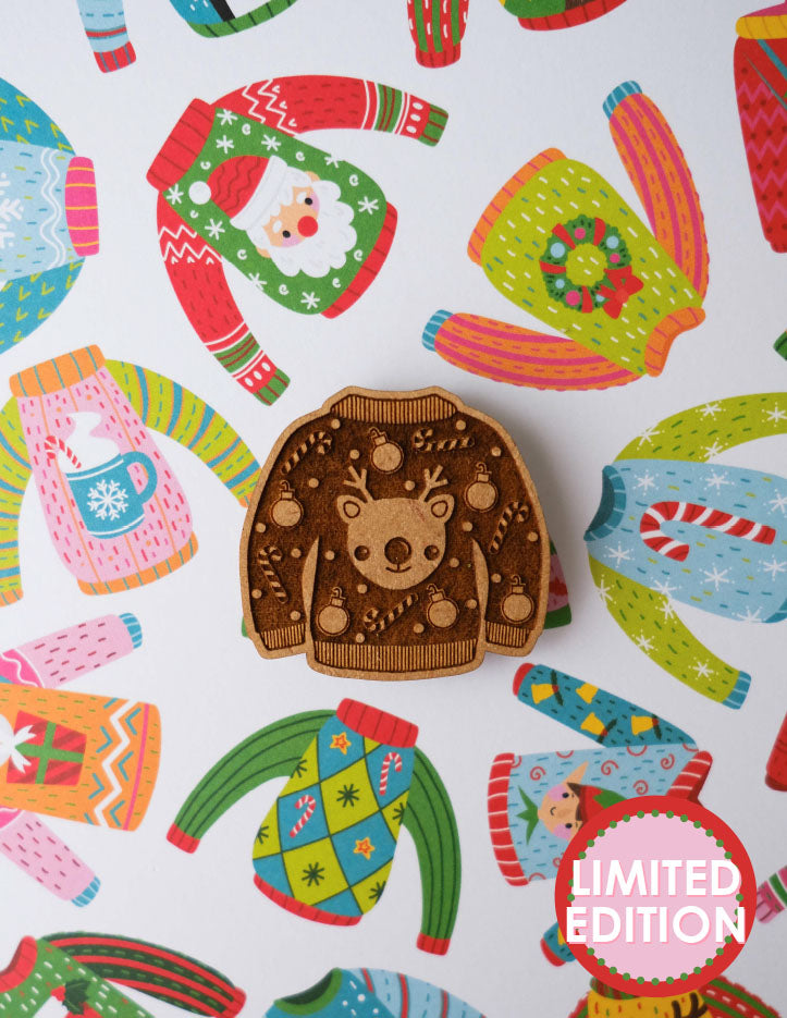We've all heard of ugly sweaters during the holiday season but this year, let's wear a cute one instead! Our cute sweater needleminder features a sweet little reindeer surrounded by candy canes and Christmas ornaments making it the perfect festive edition to all your WIPs.