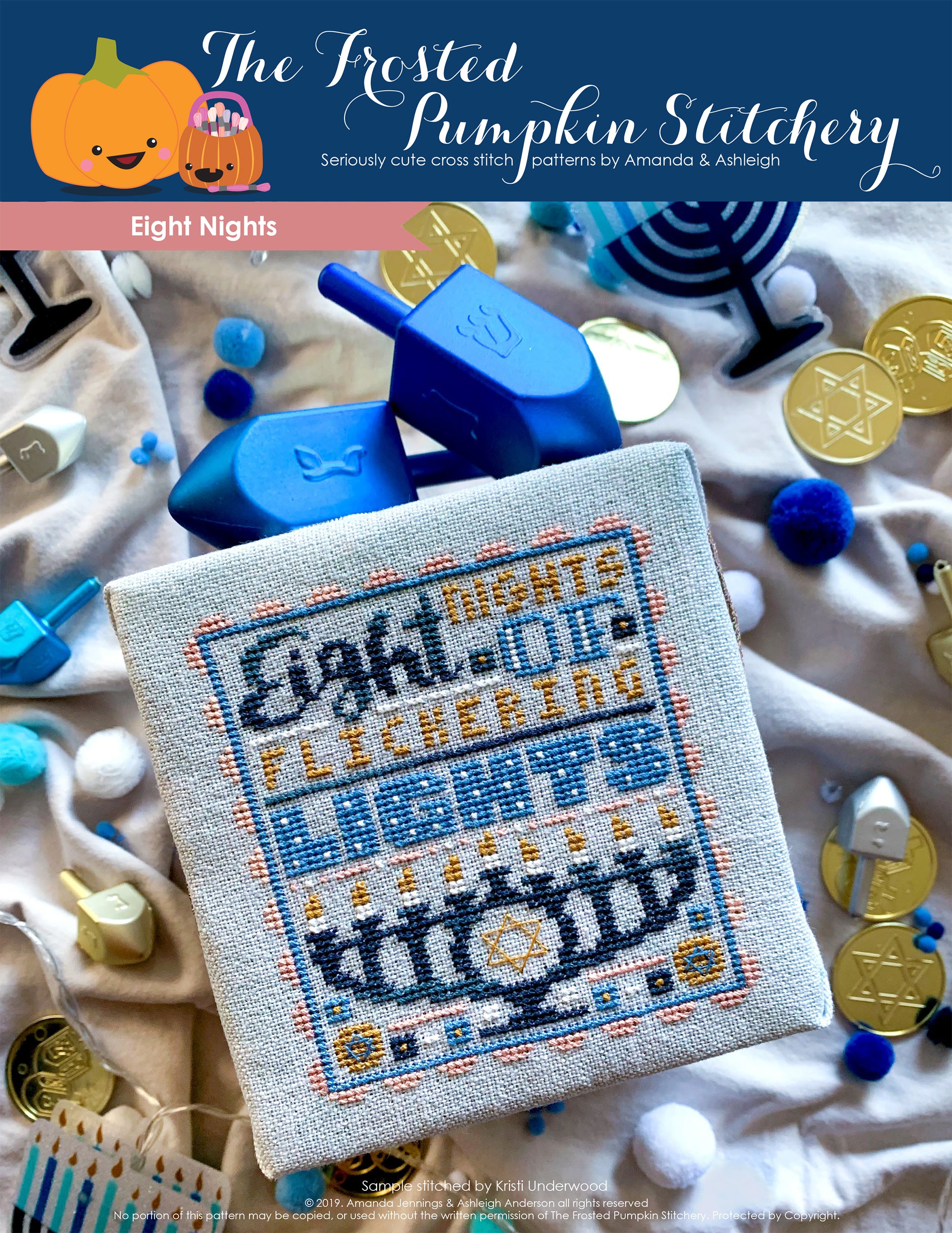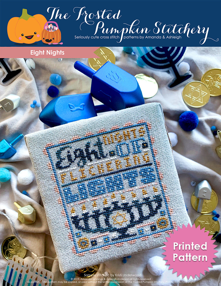 Eight nights of flickering lights, including a beautiful menorah, Star of David, gelt and more! Celebrate Hanukkah with this seriously cute counted cross stitch pattern.